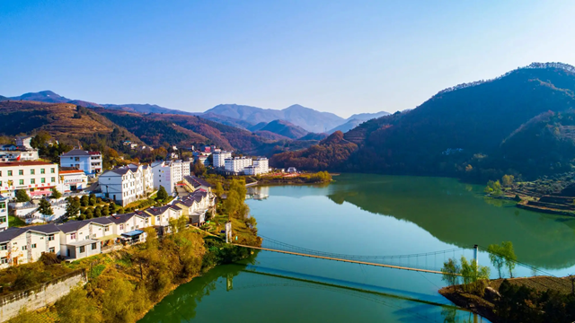 金秋时节,在平利县长安镇高峰村,石牛河蜿蜒流淌,不时有水鸟翩跹掠过水面。