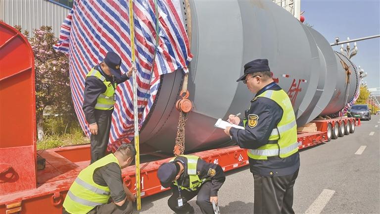 “得知企业有大件运输需求后,我们第一时间主动对接,并结合企业发货节点,在严格遵照相关规定、逐项细致核验车辆资质、货物信息、装载规范等情况的基础上,最大限度压缩办理时限,全力确保货物安全、准时运往目的地。”4月13日,宝鸡市交通运输综合执法支队执法四大队副大队长彭鹏说。
