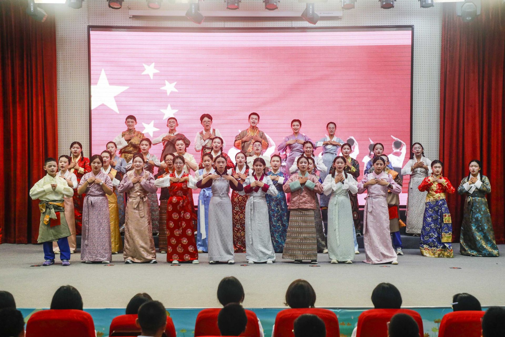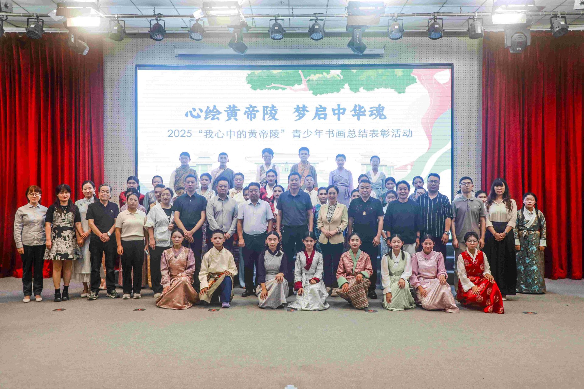 活动最后,身着藏族传统服饰的学生登台表演合唱《中国》,将活动气氛推向高潮。在悠扬的音乐声中,2025“我心中的黄帝陵”青少年书画活动总结表彰活动圆满落幕。